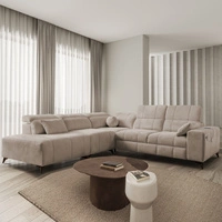 Narożnik z funkcją spania Luigi XII beżowy lewostronny stylowy narożnik do salonu w minimalistycznym i eleganckim wykończeniu