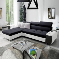 Narożnik z funkcją spania Alcamo czarny / biały prawostronny elegancki narożnik z dostawką praktyczna szuflada w boczku mebla