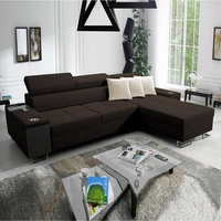Narożnik z funkcją spania Belvi II brązowy lewostronny elegancki i ergonomiczny narożnik do salonu praktyczny schowek w boczku