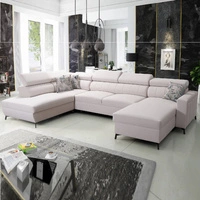Narożnik z funkcją spania Nausa pudrowy róż prawostronny velvet stylowy komfortowy narożnik regulowane zagłówki pojemnik na pościel