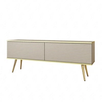 Szafka RTV Luxury 135 cm beżowa elegancki design stylowy ryflowany front korpus zwieńczony złotą listwą złote metalowe nogi