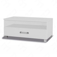 Szafka RTV Maximus 100 cm biała z szufladą nowoczesny design obrzeża wykończone specjalną okleiną ABS szuflada na prowadnicach rolkowych