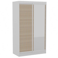 Szafa przesuwna z lustrem Delia 120 cm biała stylowa szafa z ozdobnymi lamelami w kolorze drewna wpasuje się do każdej aranżacji
