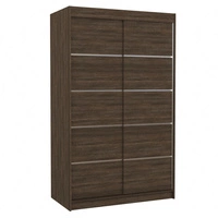 Szafa przesuwna Benisso 120 cm dąb sonoma czekolada funkcjonalna szafa do sypialni fronty wykończone poziomymi srebrnymi listwami