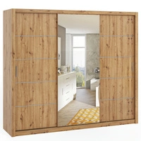 Szafa przesuwna z lustrem Rico 250 cm dąb artisan pojemna szafa do sypialni garderoby lub przedpokoju klasyczna forma o geometrycznych kształtach