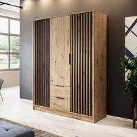 Szafa Aspen 155 cm dąb artisan / czarne lamele nowoczesny design mebla drzwi szafy ozdobione lamelami