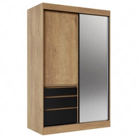 Szafa przesuwna z lustrem Haidar 140 cm dąb lefkas / czarny funkcjonalna szafa z szufladami doskonała do mniejszych pomieszczeń