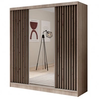 Szafa przesuwna z lustrem Delia 180 cm dąb artisan stylowa szafa z ozdobnymi lamelami w kolorze drewna wpasuje się do każdej aranżacji