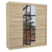 Szafa przesuwna z lustrem Bergen 200 cm dąb sonoma jasny klasyczna forma dekoracyjne listwy na frontach szafy do przedpokoju