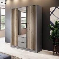 Szafa z lustrem Aspen 155 cm szara / lamele w kolorze dąb artisan nowoczesny design mebla drzwi szafy ozdobione lamelami