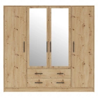 Szafa z lustrem Caspe 200 cm dąb artisan nowoczesny design wykończenie ABS oraz czarne uchwyty