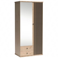 Szafa z lustrem Cali 100 cm dąb artisan / czarny drzwi szafy ozdobione lamelami w kolorze dębu czarne uchwyty