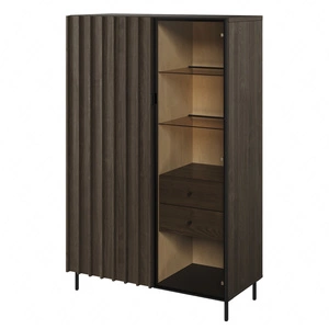 Witryna niska Clovis 100 cm czarny / dąb evoke doskonała witryna do salonu lub jadalni wnętrze mebla ozdobione dekoracyjnymi lamelami