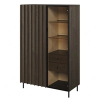 Witryna Larona 65 cm orzech satin / touchwood elegancka witryna do salonu prosta bryła idealna do każdego wnętrza elementy z bezpiecznego szkła hartowanego