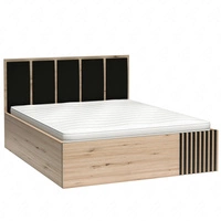 Łóżko Cali 140x200 cm dąb artisan / czarny z pojemnikiem to idealne łóżko do sypialni tapicerowany zagłówek ozdobne lamele na łóżku