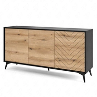 Komoda Gusto 154 cm czarna / dąb evoke funkcjonalna idealna do wnętrz w stylu nowoczesnym klasycznym i skandynawskim