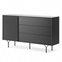 Komoda z szufladami Muti 177 cm czarna niezwykle modna komoda do salonu designerskie ryflowania nadają oryginalności metalowe nogi