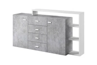 Komoda z szufladami Bota 180 cm biała / beton colorado asymetryczny kształt idealny do wnętrz w stylu nowoczesnym odporna na uszkodzenia