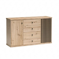 Komoda z szufladami Aspen 155 cm dąb artisan / czarne lamele nowoczesny design mebla drzwi komody ozdobione lamelami