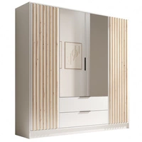 Szafa z lustrem Neri 200 cm biała stylowe lamele zdobiące drzwi szafy pojemne szuflady uchwyty krawędziowe