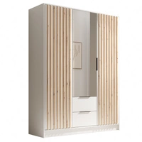 Szafa z lustrem Neri 150 cm biała stylowe lamele zdobiące drzwi szafy pojemne szuflady uchwyty krawędziowe