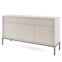 Komoda Kioto II 158 cm beżowa nowoczesny design prosta forma wzbogacona złotymi uchwytami stabilna metalowa podstawa