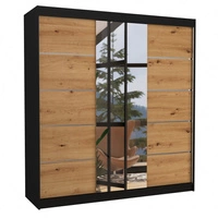 Szafa przesuwna Beta 200 cm dąb mauvella / czarny pojemna szafa z lustrem świetnie sprawdzi się w pomieszczeniach o każdej wielkości