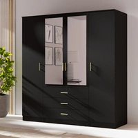 Szafa Adel 200 cm czarna elegancki design pojemna szafa z lustrem i szufladami idealna do sypialni lub przedpokoju złote uchwyty