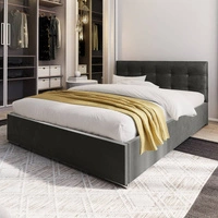 Łóżko tapicerowane Mona 160x200 grafitowe z pojemnikiem w nowoczesnym skandynawskim stylu z pikowanym zagłówkiem z kryształkami