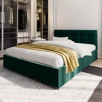 Łóżko tapicerowane Mona 160x200 butelkowa zieleń z pojemnikiem w nowoczesnym skandynawskim stylu z pikowanym zagłówkiem z kryształkami