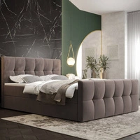 Łóżko kontynentalne Harmony 160x200 brąz w nowoczesnym skandynawskim stylu z wezgłowiem wykończonym ozdobnymi guzikami
