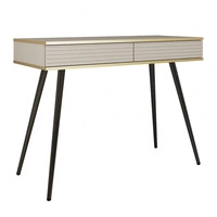 Konsola Luxury beżowa z szufladami elegancka toaletka z ryflowanymi frontami wysokie czarne nogi korpus zwieńczony złotą listwą