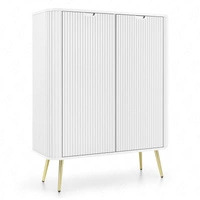 Komoda Zoya 103 cm biała elegancki design owalny kształt bryły osadzony na złotych metalowych nogach gustowny ryflowany front