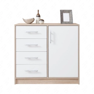 Komoda z szufladami Caspe 90 cm dąb sonoma jasny / biała nowoczesny design mebla obrzeża komody wykończone specjalną okleiną ABS