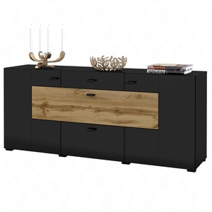 Komoda z szufladami Coby 165 cm czarna / dąb wotan nowoczesny design idealna komoda do salonu sypialni lub biura czarne uchwyty
