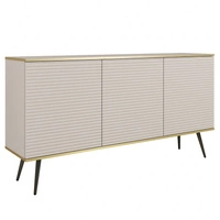 Komoda Luxury 160 cm beżowa elegancki design stylowe ryflowane fronty korpus komody zwieńczony złotą listwą czarne metalowe nogi