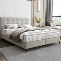 Łóżko tapicerowane Sobral 180x200 kremowe komfortowe łóżko z pojemnikiem na pościel gustowny zagłówek i zanóżek