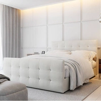 Łóżko kontynentalne Kansas 160x200 beżowe w skandynawskim nowoczesnym stylu z pikowaniem wykończonym kryształkami