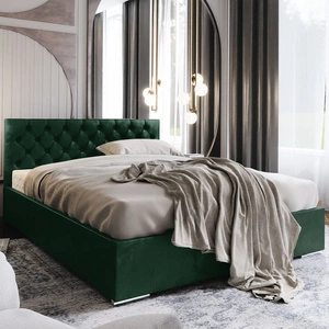 Łóżko tapicerowane Alvorada 140x200 butelkowa zieleń z pojemnikiem w nowoczesnym skandynawskim stylu z pikowanym zagłówkiem
