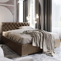 Łóżko tapicerowane Alford 140x200 jasny brąz z pojemnikiem w nowoczesnym skandynawskim stylu z pikowanym zagłówkiem oraz zanóżkiem wykończone kryształkami