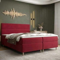 Łóżko kontynentalne Benet 180x200 bordowy w nowoczesnym skandynawskim stylu z charakterystycznym wezgłowiem oraz zanóżkiem