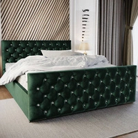 Łóżko tapicerowane Uberaba 140x200 butelkowa zieleń z pojemnikiem w nowoczesnym skandynawskim stylu z pikowanym wezgłowiem i zanóżkiem z kryształkami