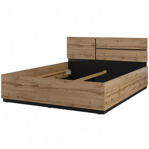 Łóżko Tipler 160x200 cm z pojemnikiem na pościel dąb artisan / antracyt nowoczesny design mebla częściowo tapicerowany zagłówek