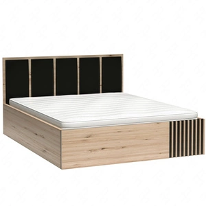 Łóżko Cali 180x200 cm dąb artisan / czarny z pojemnikiem to idealne łóżko do sypialni tapicerowany zagłówek ozdobne lamele na łóżku
