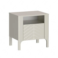 Szafka nocna Malumi beżowa elegancka szafka do sypialni osadzona na wysokiej podstawie front z gustownym wzorem jodełki