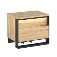 Szafka nocna Qubic dąb artisan / raw steel stylowa szafka z szufladą i funkcjonalnym oświetleniem LED idealny dodatek do sypialni