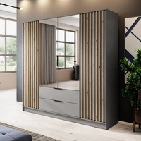 Szafa z lustrem Aspen 206 cm szara / lamele w kolorze dąb artisan nowoczesny design mebla drzwi szafy ozdobione lamelami