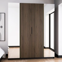 Szafa z lustrem Kastano XIV 200 cm czarny / dąb evoke elegancki design drzwi szafy ozdobione czarnymi lamelami szafa do przedpokoju