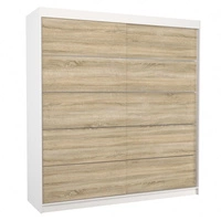 Szafa przesuwna Esteva 200 cm biały / dąb sonoma jasny praktyczna szafa do sypialni fronty wykończone poziomymi srebrnymi listwami