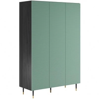 Szafa Salem 135 cm czarne drewno / pistacjowa zieleń stylowy design szafa do pokoju z dekoracyjnymi lamelami smukłe metalowe nogi